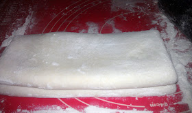 The name of the game here, is cold, cold, cold.  You want to make sure everything is cold.  It says it quite a few times in the recipe, but I thought it wouldn't hurt to say it one more time.  (I might say it again in a minute too).  After I was making this, I realized I think I have even heard of some people refrigerating their flour as another step in the cold direction.  (Did I mention this needs to be cold?)  I didn't take that extra step but if you want to, it wouldn't hurt, that's for sure.  Also remember that flour is your friend here.  Stay tuned for tomorrow's post to see what's inside, it was DElicious!  (Yes, it needed a capital D and E to emphasize how delicious it was.  Not a typo.)